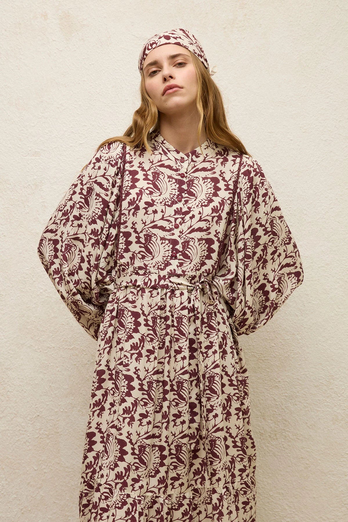 Balloon Sleeve Cotton Dress Stone
