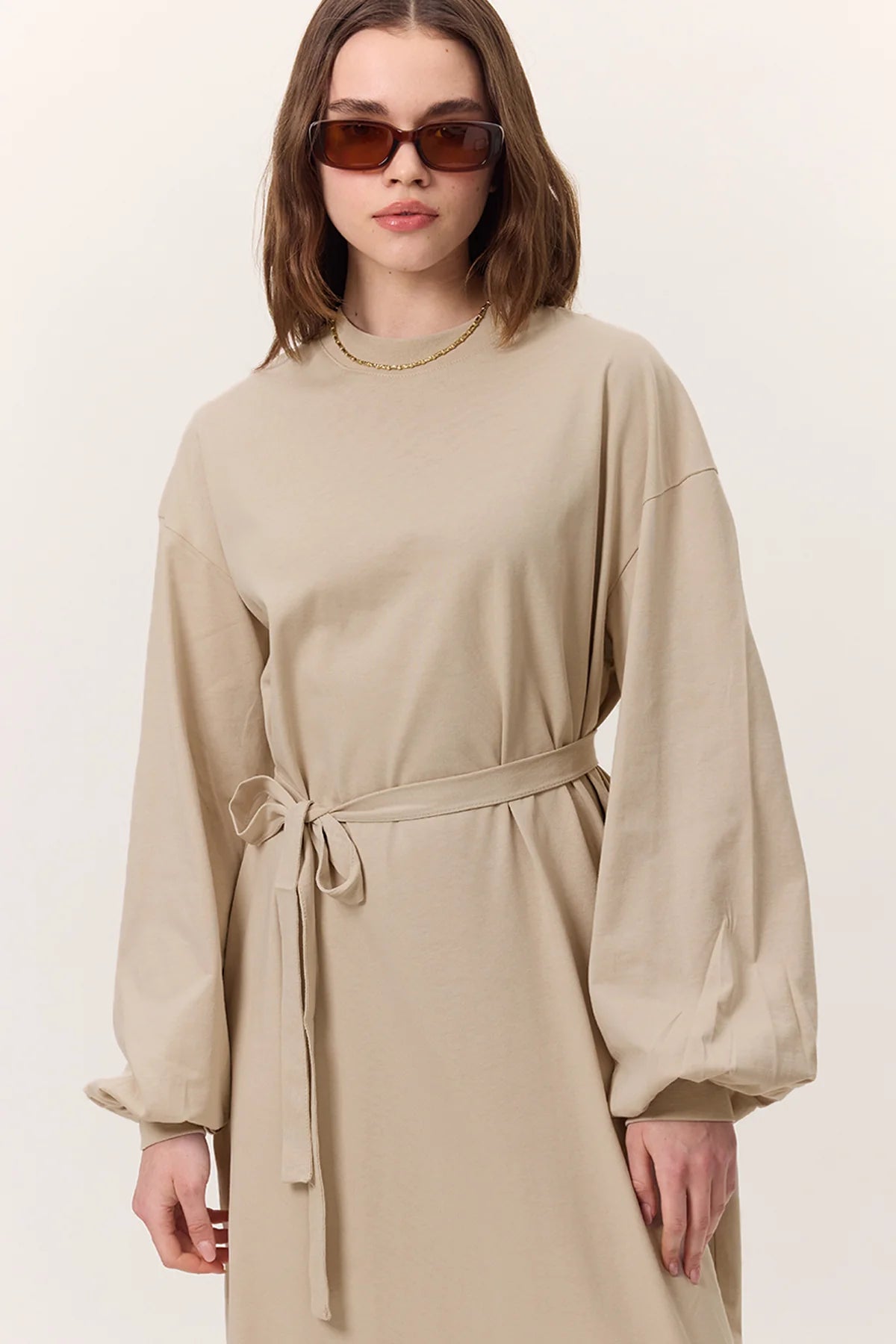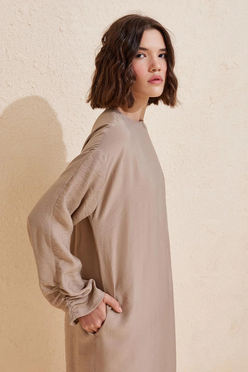 Sleeve Detail Modal Dress Mink