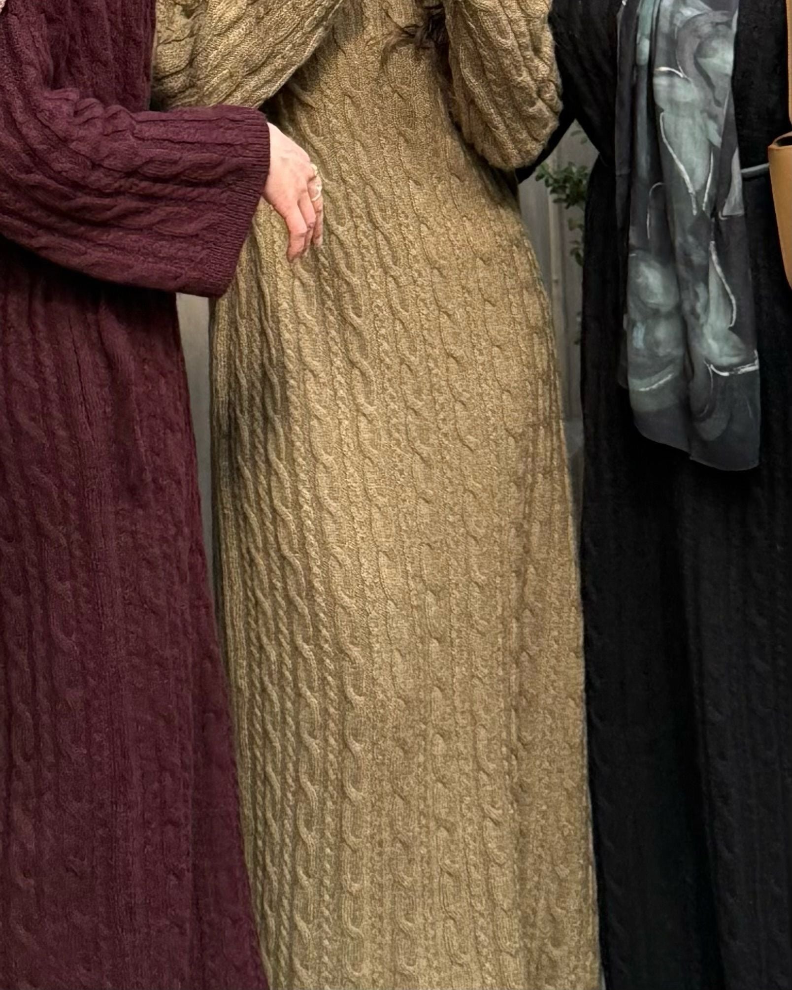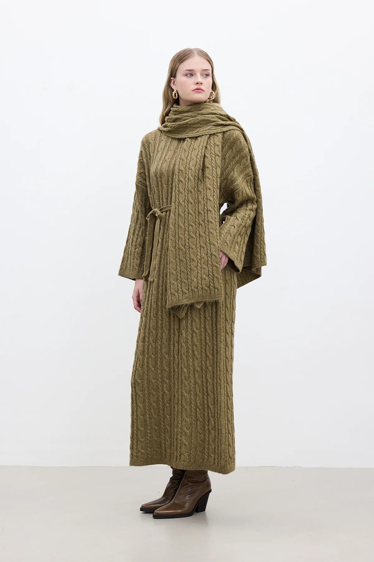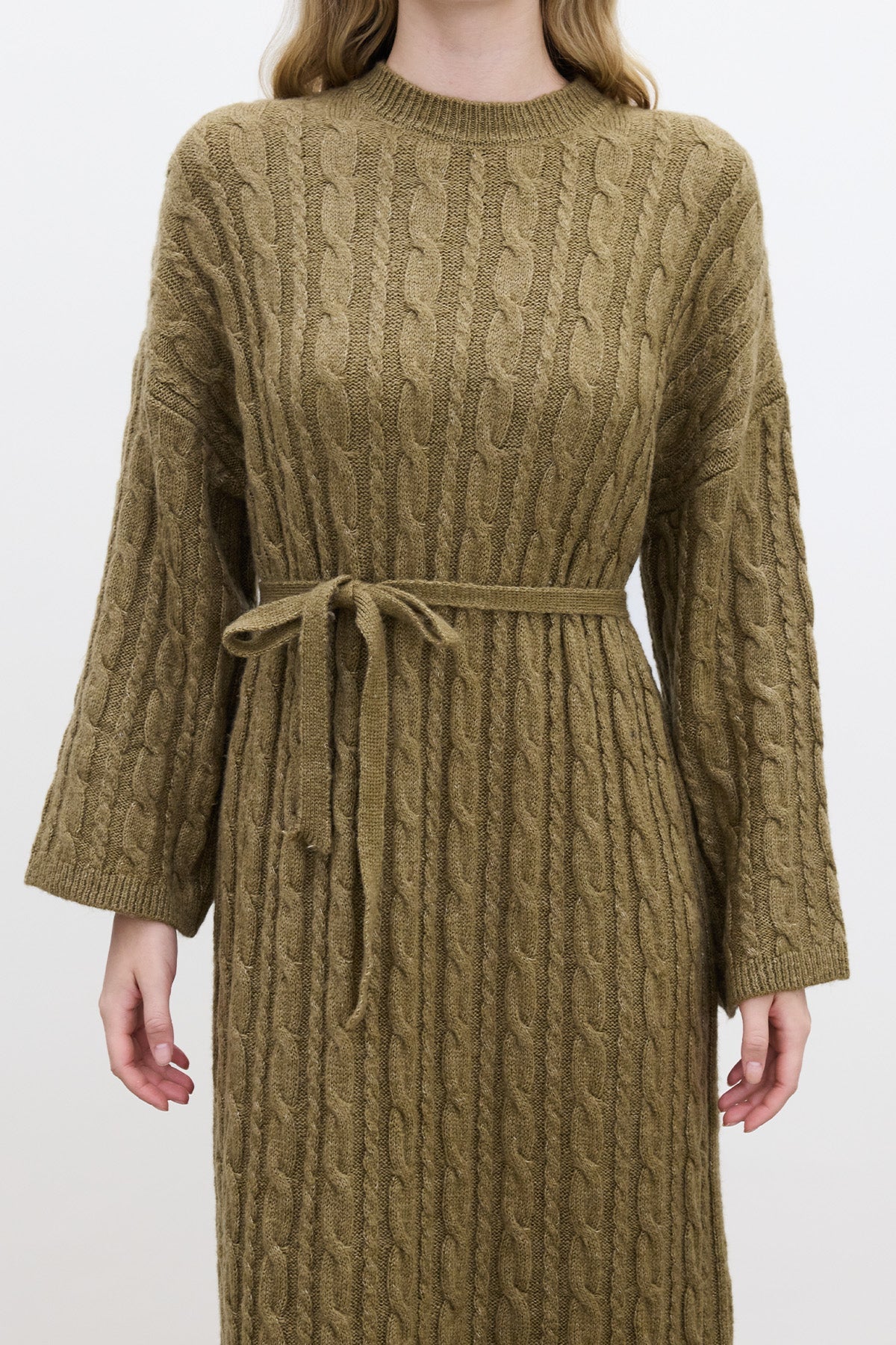 Cable Knit Sweater Dress Green