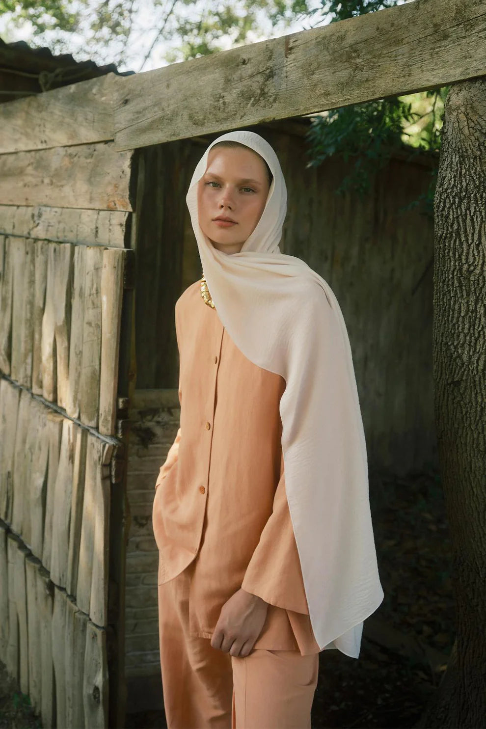 The Crepe Krash Shawl brings a touch of elegance to your style, blending classic sophistication with a modern twist through its self-wrinkling design. Its draped structure and easily moldable texture offer an effortlessly chic look, making it perfect for any occasion. Whether you're complementing your everyday outfits or adding a touch of refinement to special events, this shawl is your versatile companion.