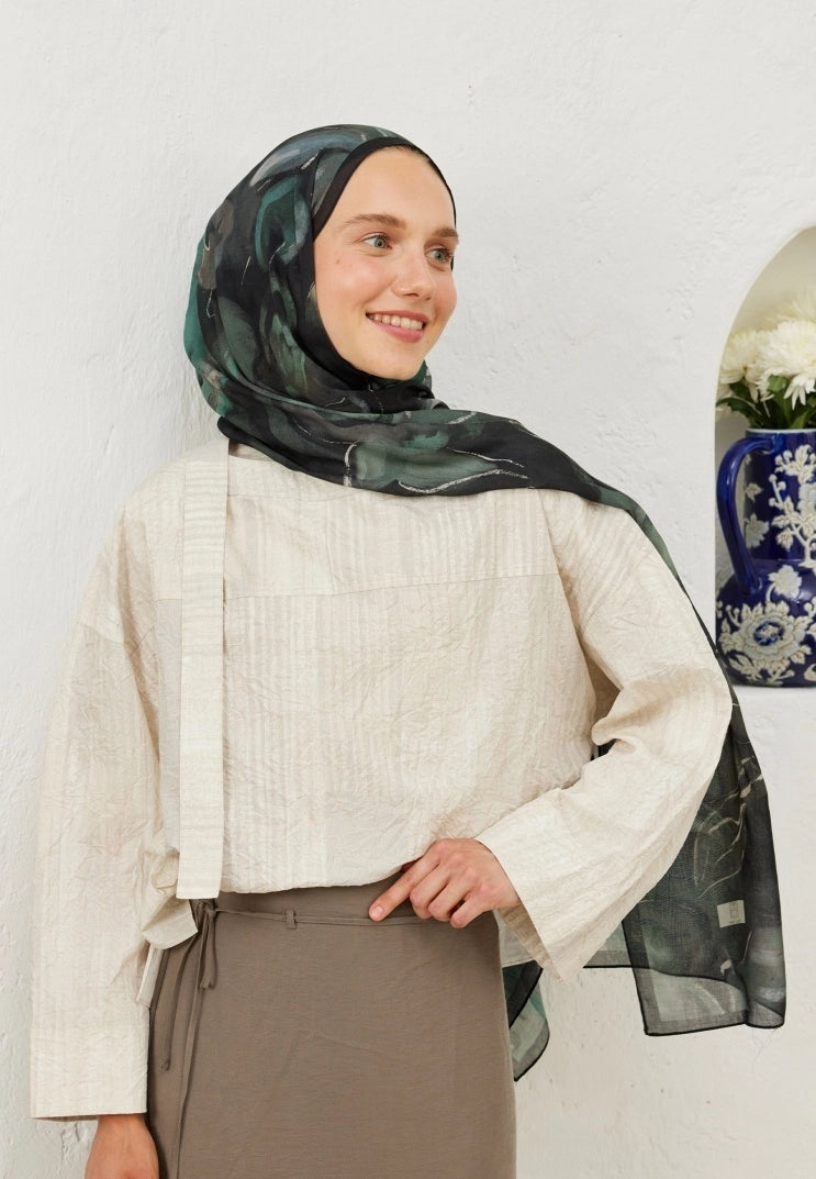 The Rami Scarf Collection is so lightweight, thanks to the viscose and rami yarns used, that it makes you feel the breeze in your hair.