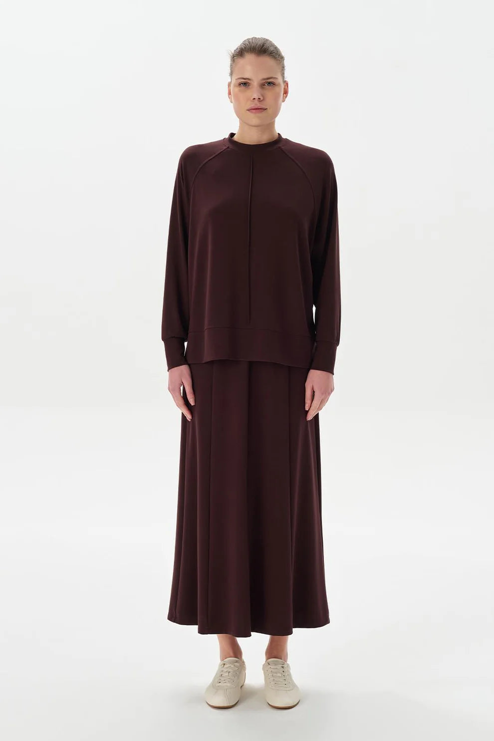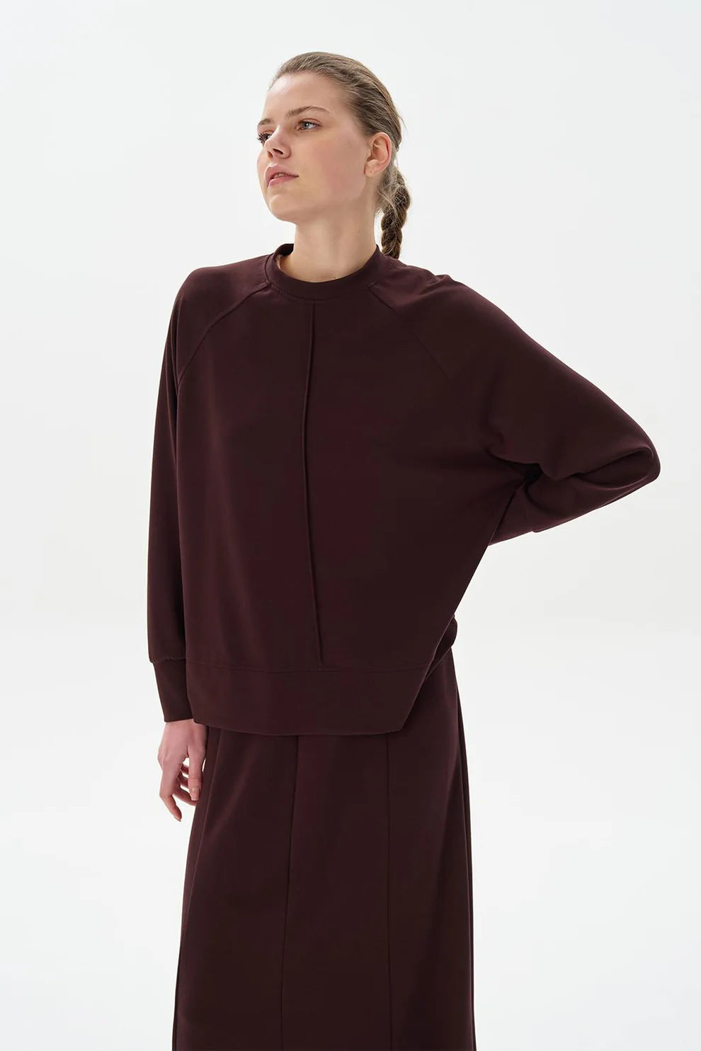 - Crew neck, raglan sleeve, asymmetric form with front stitched detailing