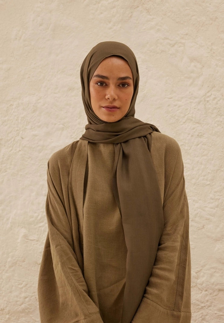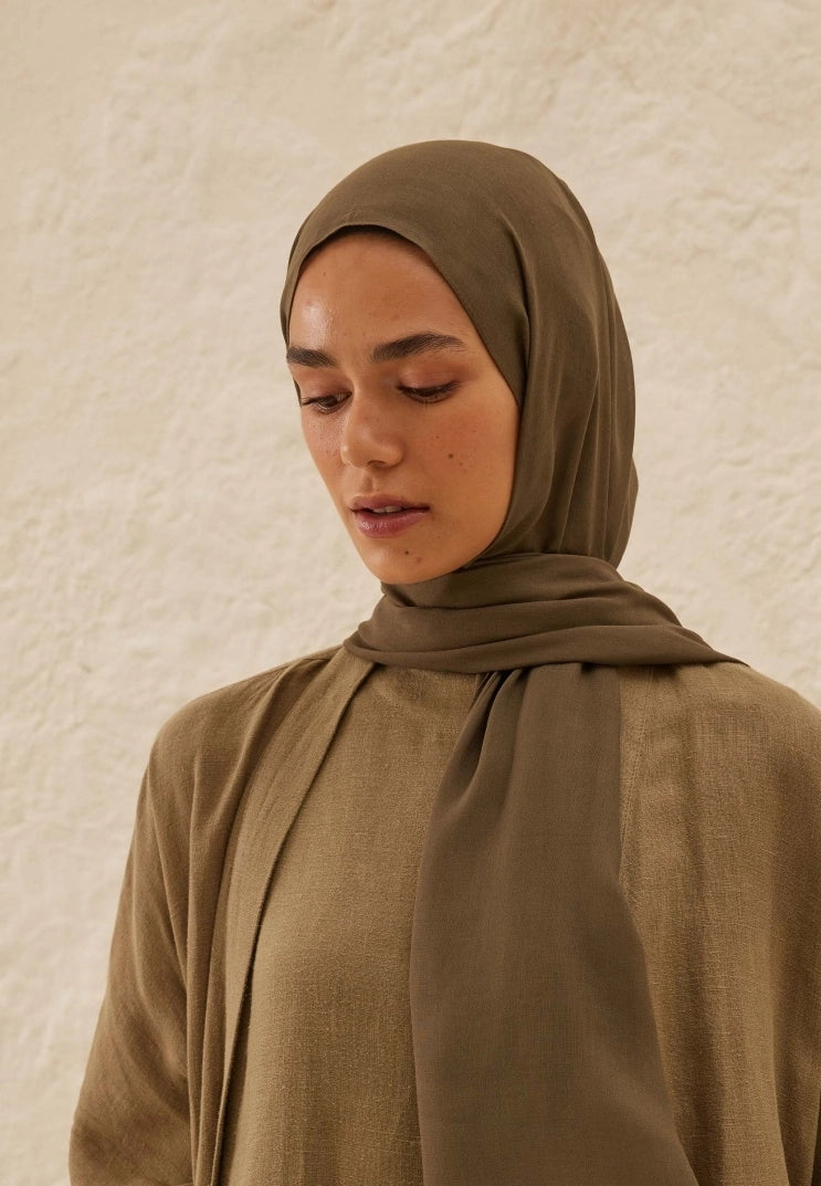 Plain Rami Viscose Scarf Earth